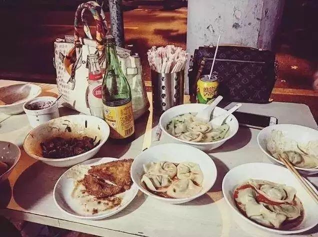乍一看,却只觉得,简陋,十分简陋,两三个木凳和桌子散立在路边,人多的时候,只好委屈食客们,端一碗馄饨,沿街半蹲。