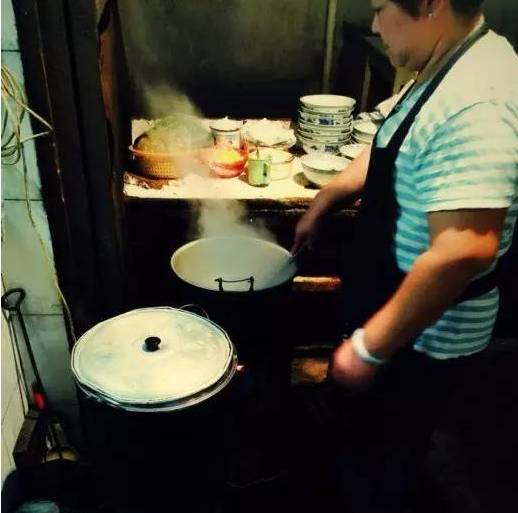 老板煮馄饨不碰钱,全靠顾客诚信自己找零,点了馄饨后得自己到锅边来端馄饨,“高冷”的不得了~