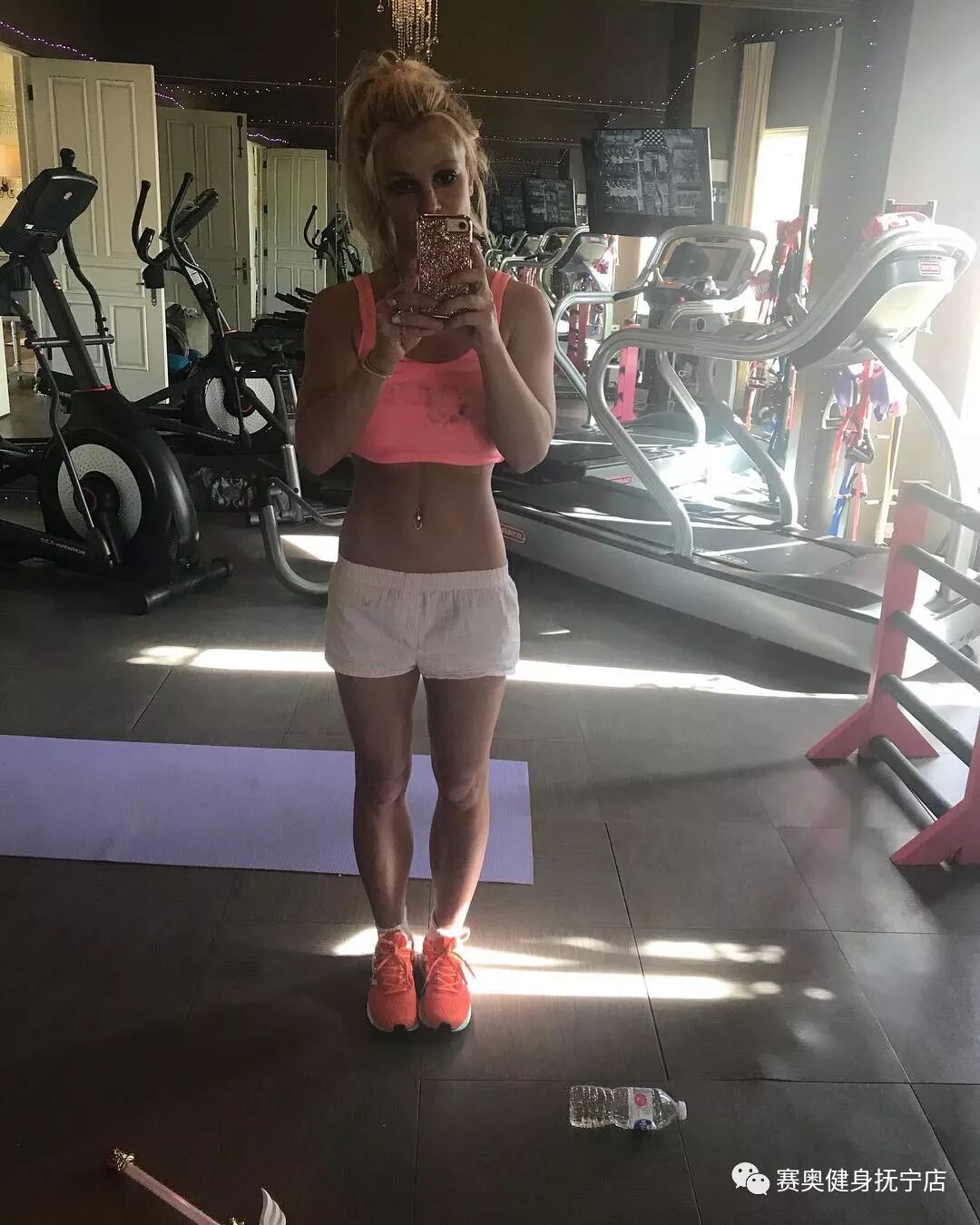 不过前天晒出的这张照片就被网友喷惨了:布兰妮在健身房的自拍却配文:自己热爱有氧但其实平时并不怎么运动。