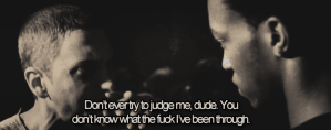 高中辍学出来的阿姆到处打零工,同时他也经常写一些说唱的DEMO并不时会参加底特律本地的RAP BATTLE比赛(一种自由式的rap 说唱比赛),身为白人的阿姆,并不被黑人称霸的rap界看好。