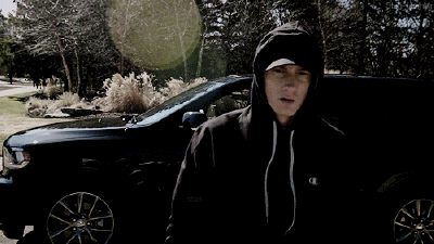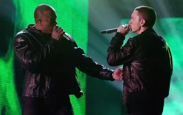 俗话说,大难不死必有后福。阿姆的人生事业开始有点眉目了,先是在底特律的一场地下BATTLE战里赢得了第一名(这段经历阿姆的自传电影8英里有详细描述),并获得了当时西海岸说唱大佬德瑞博士Dr.Dre的赏识(魔音耳机的创始人,阿姆的人生导师)