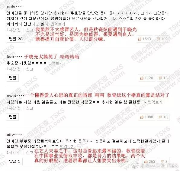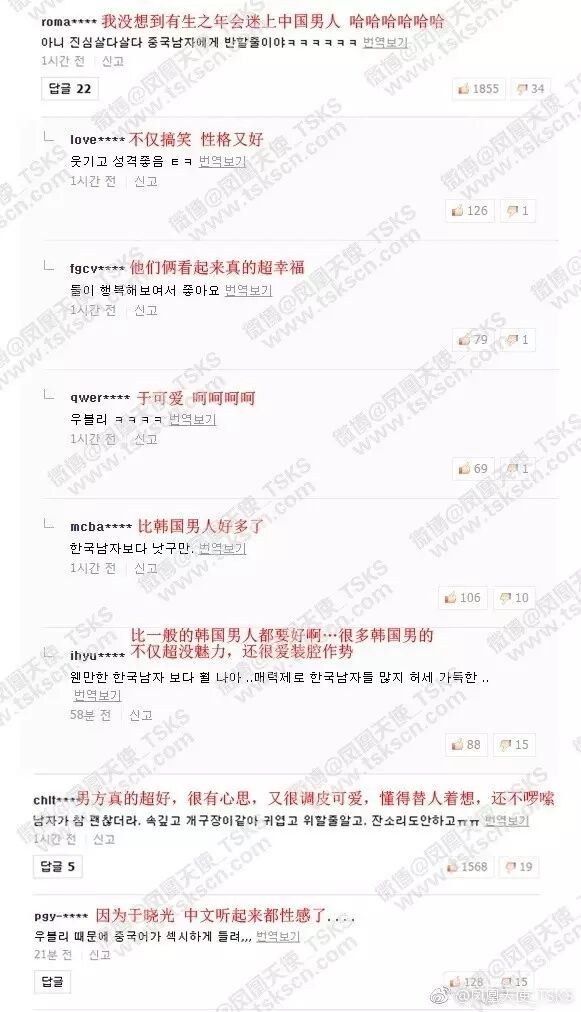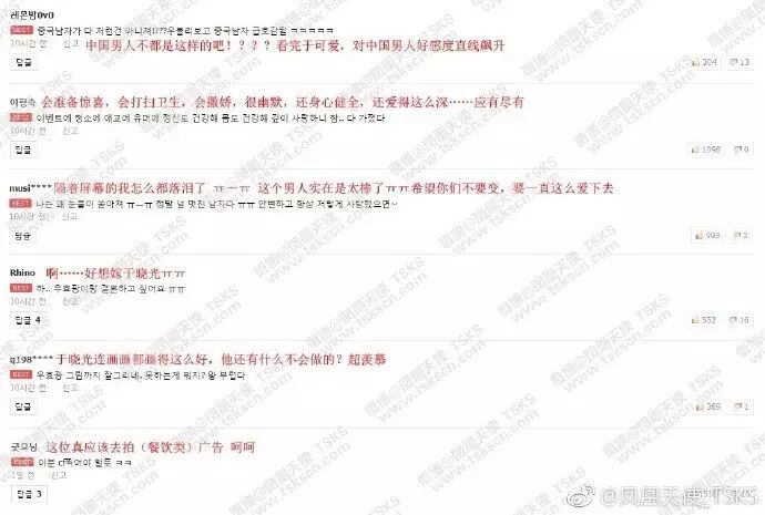 韩国观众还给于晓光起了昵称叫“于布利”,翻译成中文就是“于可爱”的意思。只要有关于于布利的评论,基本上都是满分好评,简直让人怀疑于晓光买了“韩国水军思密达”。而其中点赞数最高的一条就是:“我没想到有生之年会迷上中国男人哈哈哈哈哈哈”