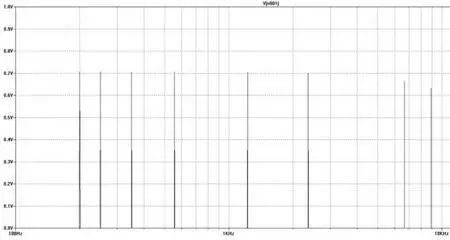 它变得毛刺更多。您能在此图中看到的唯一真实信息便是在指定时间内的电压电平。这就是信息的本质,它极其重要——但也使分析变得复杂,更使了解调制工作变得更加困难。为此,您可能希望用另一种不同的方式(频域)绘制信号图像。它显示信号在一系列频率上的强度。让我们看一下。