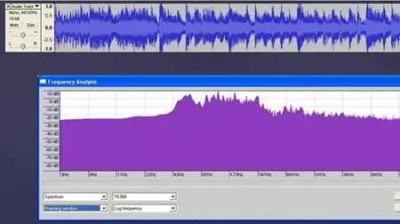 这就是大多数信号的看上去的样子,尤其是模拟信号。人和乐器的声音并不是在离散的频率上播放,其频率内容分布在整个频率范围内(尽管某些内容几乎是听不到的)。这个范围在3Hz至20kHz之间,大约就是人耳能够听到的频率范围。低音部的频率较低,高音部的频率较高。Y轴标度用dB表示,dB表示一个比例,没有单位。在本质上来说,dB值越高,那个频率对应的信号就越高。