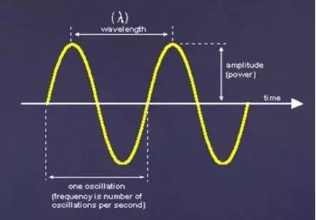 频率是描述每隔多长时间振荡一次或重复一次的术语,单位为赫兹(Hz)或秒的倒数。如果每秒振荡60次,则其频率为60Hz。在本文中,我们将主要探讨音频波(气压的振荡),及其如何以数百千赫频率从无线电台传播到您的车载收音机上(或任何AM无线电台)。任何波都有一个频率,光波也一样。光波和其他更高频率的波(例如X射线、伽马射线、微波)一般用波长来表示,而不用频率。例如,绿色光的波长大约为400纳米。下图显示了行进波单位间的关系: