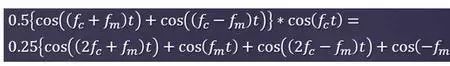 我们的AM信号如果用公式来表达,涉及多个信号的乘法运算,这在时域或频域中是很难想像的,因为我们仅仅看到音频是什么样的。但是上述这种对应关系告诉我们:两个信号相乘可用两个信号相加来表示!现在,我们很容易在频域中绘制出经乘法运算得到的信号。