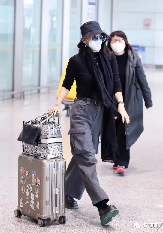 穿搭技巧:黑色针织上衣+灰色阔腿裤