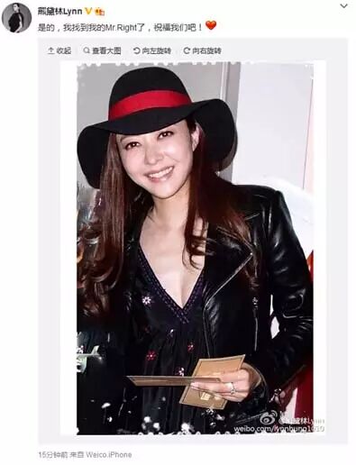 昨日,她在微博上发文称:“是的,我找到我的Mr.Right了,祝福我们吧!”满屏的甜蜜和幸福……