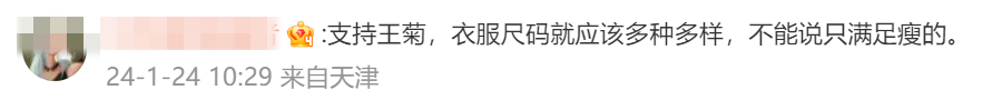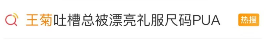 王菊表示:“这个事情,它不是我的原因,它也不是造型师的原因,我能想到的就是,它没有设计出更多的尺码给更多的人穿,它可能只符合某一种穿上去会绝美的身材,不知道现在国内有没有品牌是可以稍微做一点,不说大码吧,正常的尺码。”