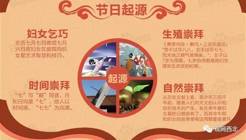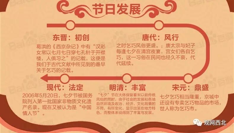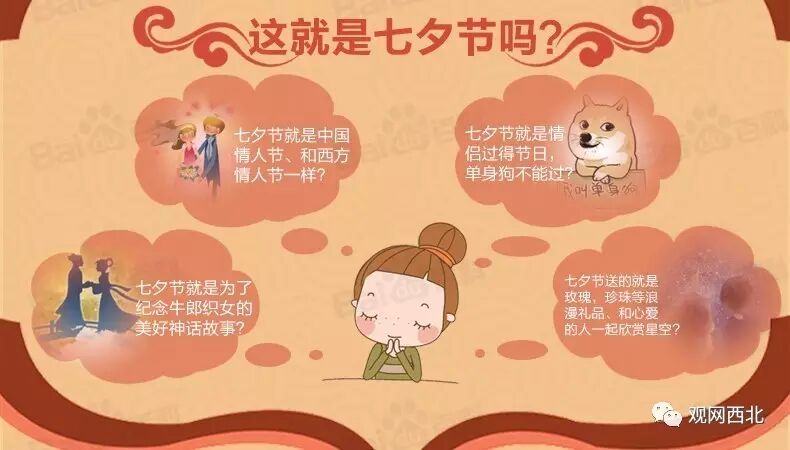 首先,判断一个节日的性质,关键要看它的习俗内容。传统上七夕根本没有青年男女相聚欢会、谈情说爱的习俗,它是古代女子乞巧的日子,更多地是与节气紧密相关,与爱情并无直接关系。