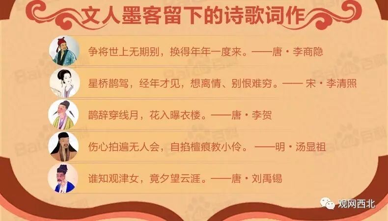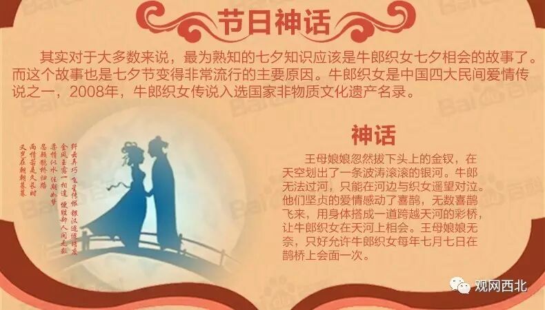 其四,尽管七夕与牛郎织女的爱情故事有关,但不能因为这个爱情故事就想当然地把七夕当成是情人节。况且由原本两颗永远不能相会的牛郎、织女星意会成的故事演绎为中国的情人节,总会给人一种凄苦的审美感觉,缺少情人节的甜蜜气氛。难怪早在秦代的占卜文献《日书》上就曾明确把牵牛、织女视为对婚姻不利了。