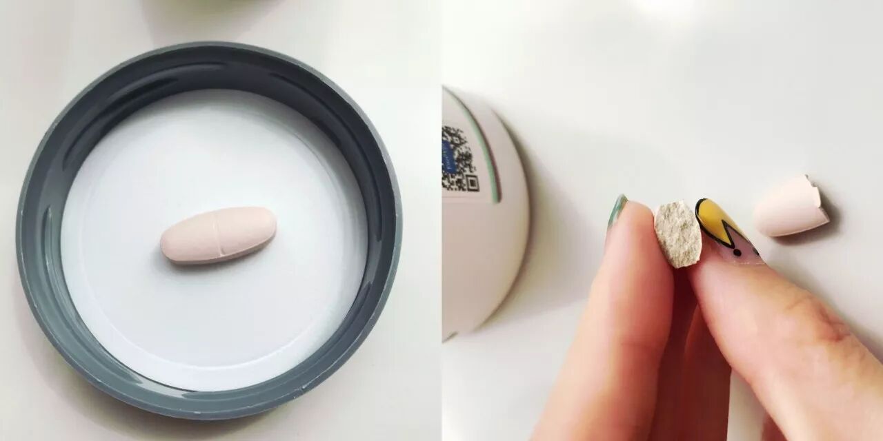 澳洲保健产品颗粒都比较大大家是知道的,如果觉得吞咽困难,可以沿药片中间的横线,轻轻用力就能掰成两半,这样就比较好服用啦,设计也是蛮贴心的。