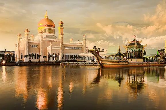 金色尖塔的努洛伊曼皇宫是尊敬的苏丹陛下的住所,以其为背景的落日景色十分壮观。