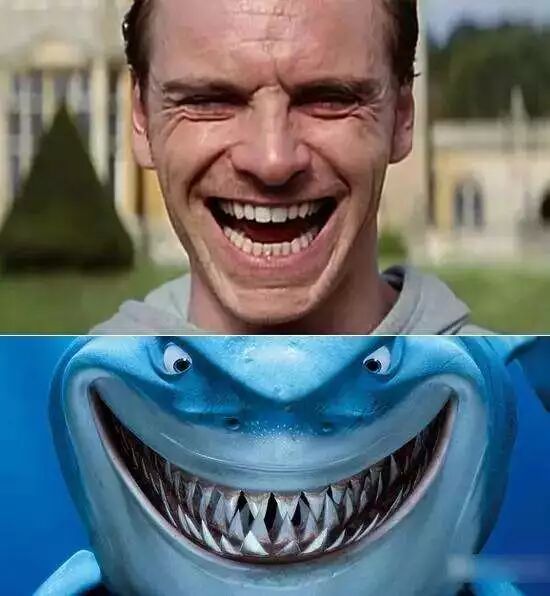 法鲨丨迈克尔·法斯宾德(Michael Fassbender),因其笑起来狰狞如鲨鱼。你若安好,就是晴天。你若张嘴,便是法鲨,笑起来鲨鱼无误。
