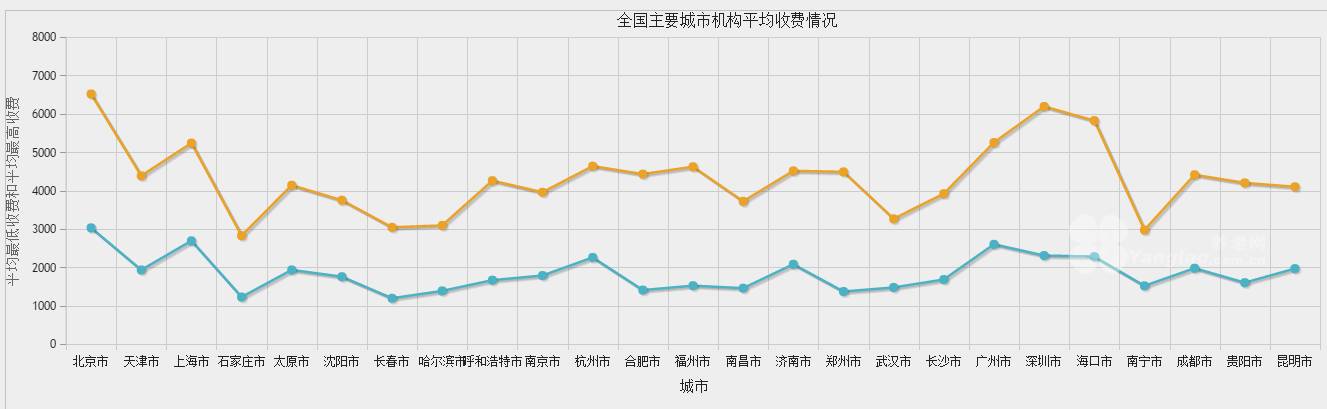 北京、上海、广州、深圳、海口收费最高,石家庄、南宁、长春、哈尔滨收费最低,其他城市收费情况相差不大。