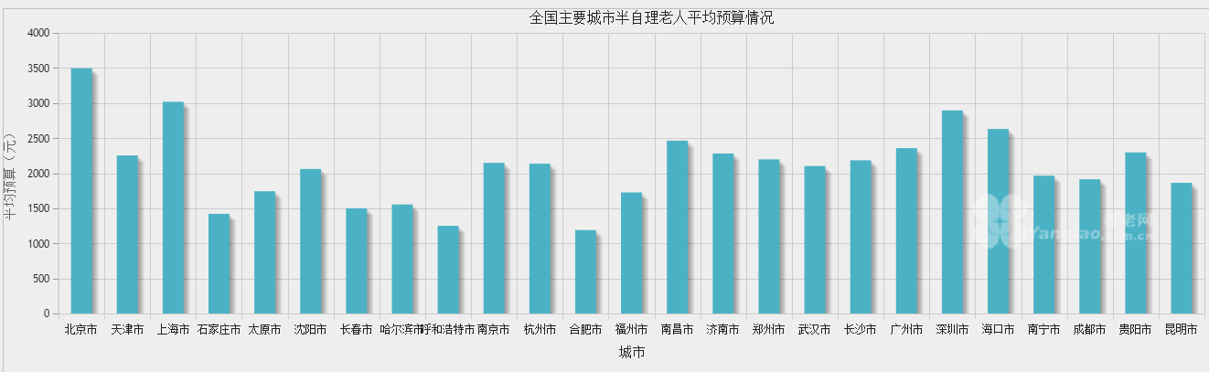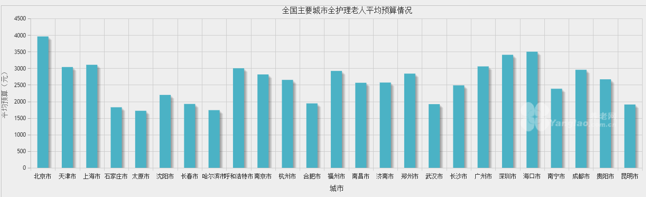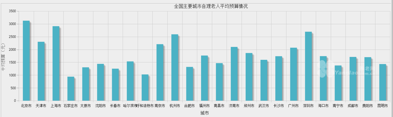 以上是全国主要城市不同护理级别老人入住养老机构的预算情况,下面机构部分会列出全国机构的平均收费情况,尤其北京地区做了对比分析。