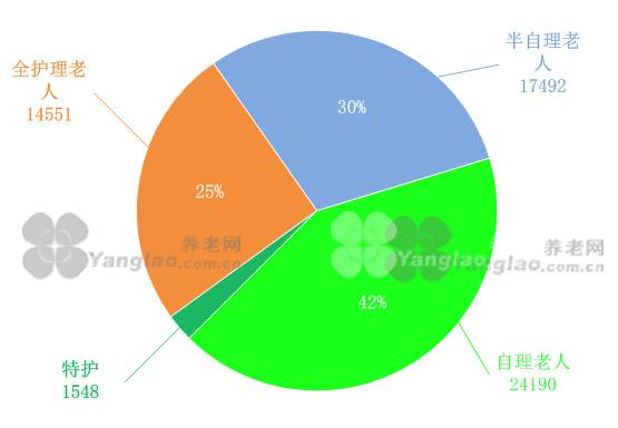 【备注】图表中老人护理级别是按照自理、半自理、全护理、特护来分,简单说明如下: