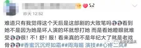 但是恕小8直言,反派不招人喜欢固然是正常,但是网友是吐槽周海媚的演技而不是她扮演的角色。