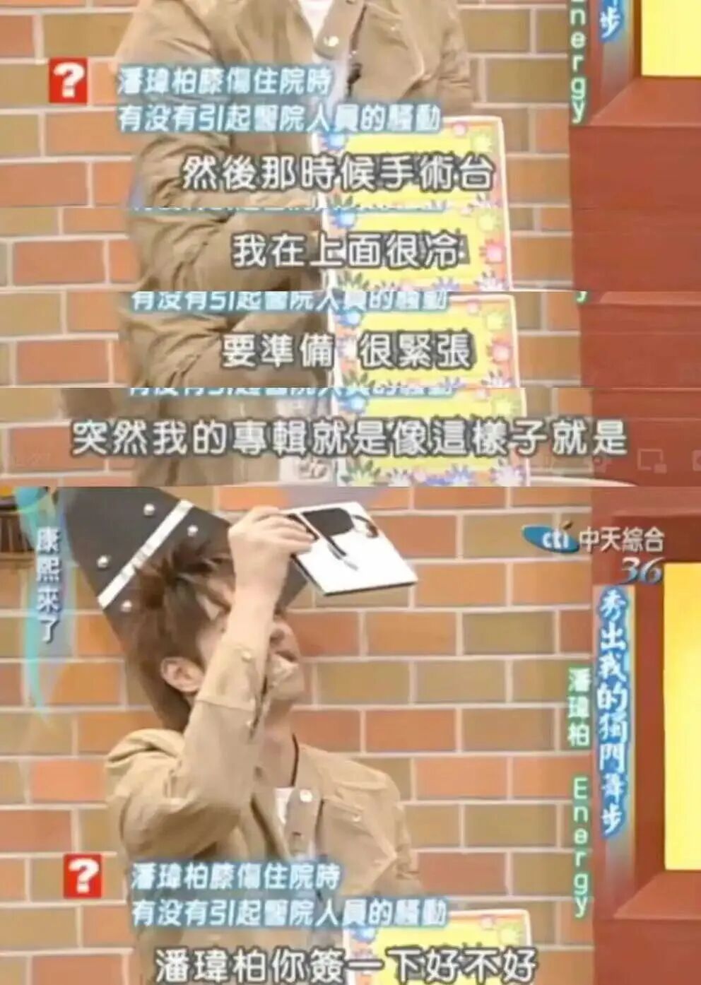 他躺在手术台上准备麻醉的时候,工作人员拿出一张专辑说:“潘玮柏你签一下好不好?”