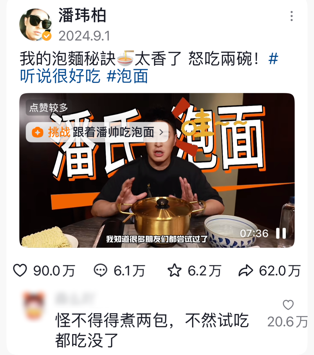 因为看他吃东西实在太有食欲了,潘玮柏的“带货”能力也深入人心。