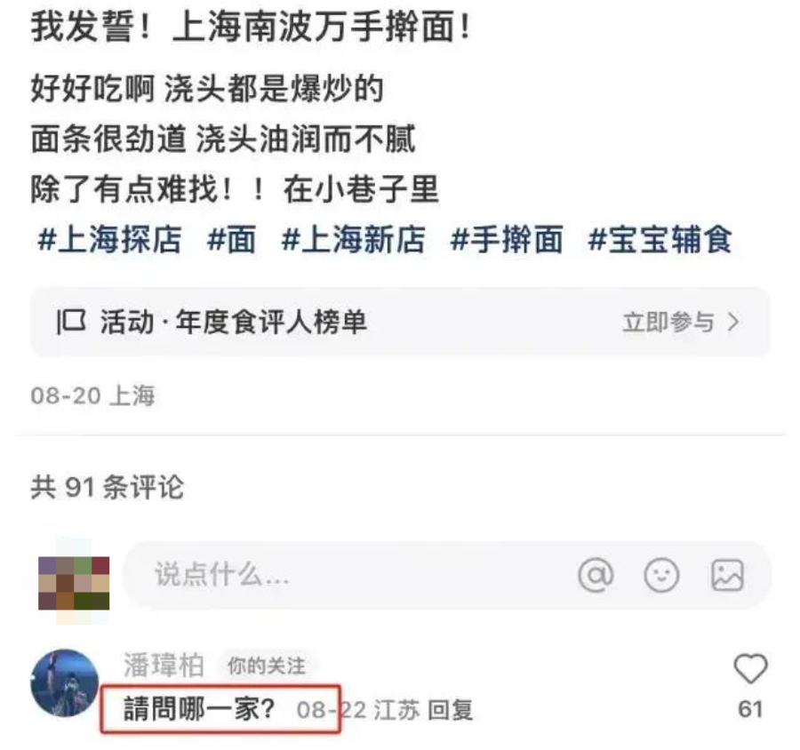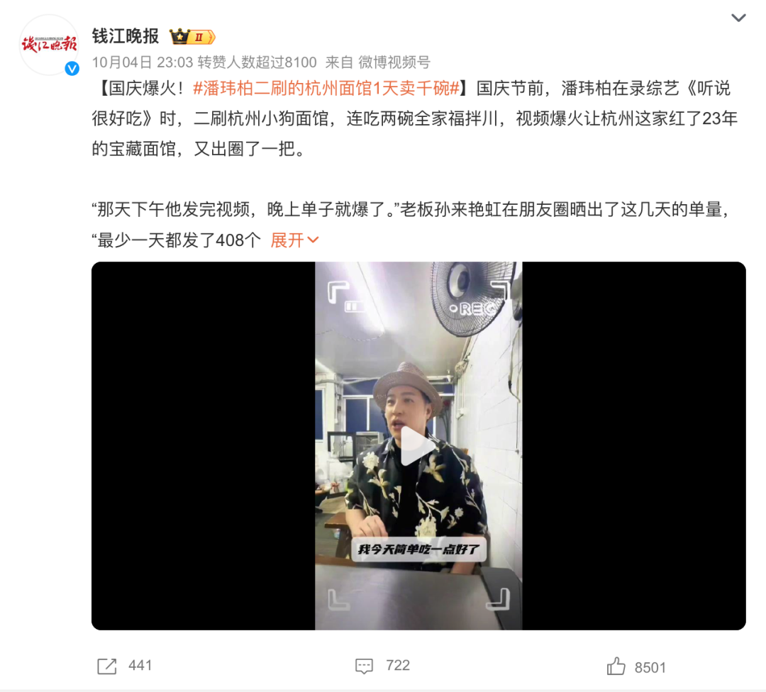 去年国庆假期,潘玮柏曾经二刷的面馆因为他的光临而大火。