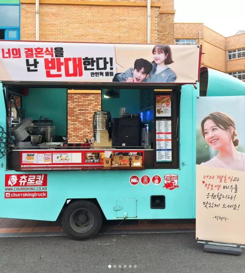 朴宝英合作金英光拍摄电影《你的婚礼》,朴炯植送应援,还配上“你的婚礼我反对,安敏赫敬上”的横幅