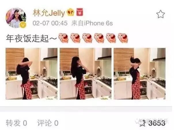 2月7号凌晨,林允发了一条下厨做年夜饭的微博看似很平常