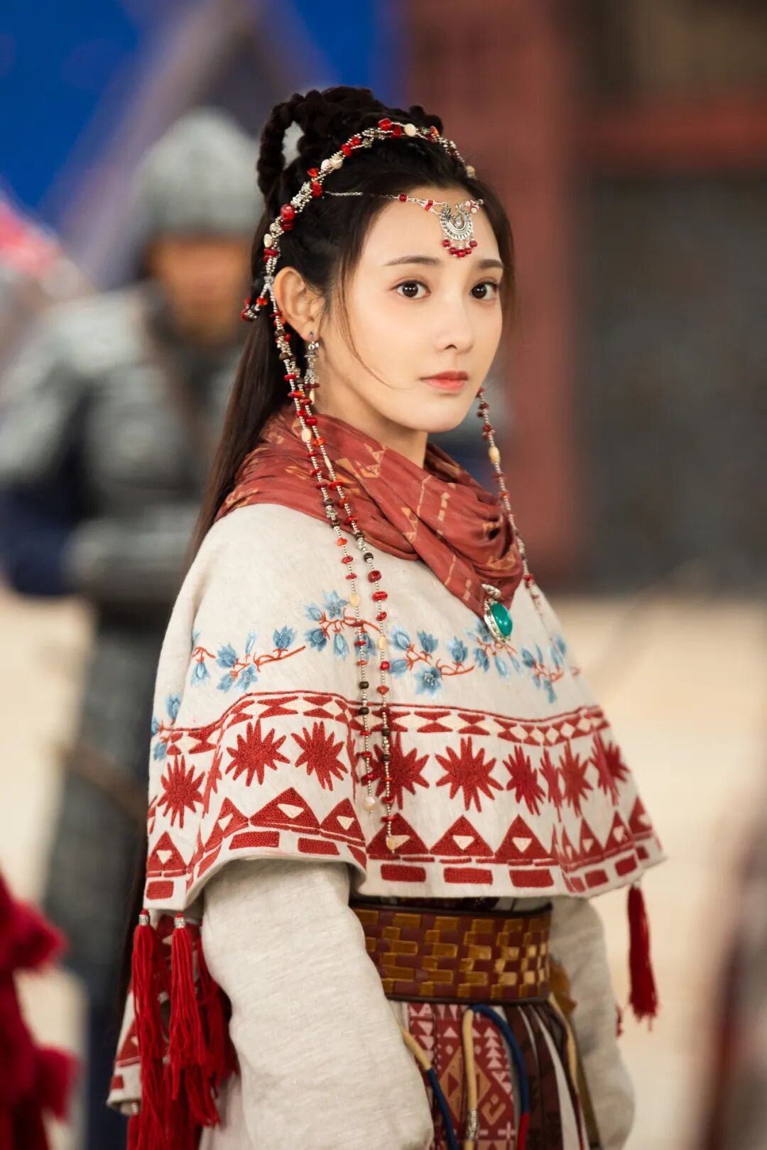 而如果要让观众在叶凌霜的夜北服装里选一套最爱的怕是选不出来,红白相间的斗篷、柿红色立领长裙、流苏毛领披肩……充满异域风情的同时又不失美艳可爱!