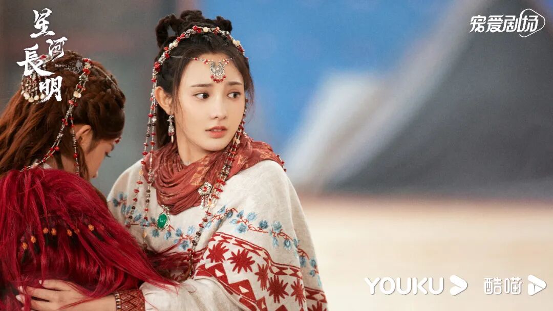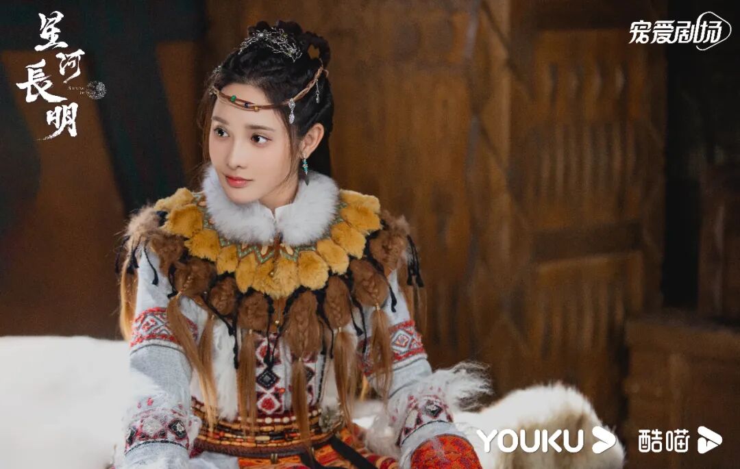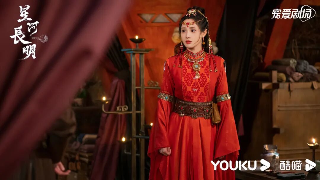 她在《星河长明》中饰演的叶凌霜总是笑颜明媚,身着异域长袍时颇有草原少女风情,而换上淡雅常服配上长袖翩翩又显古韵美感,可以说剧中她的每一套服装或素雅或华贵皆美艳动人,夸一句视觉盛宴也不为过。