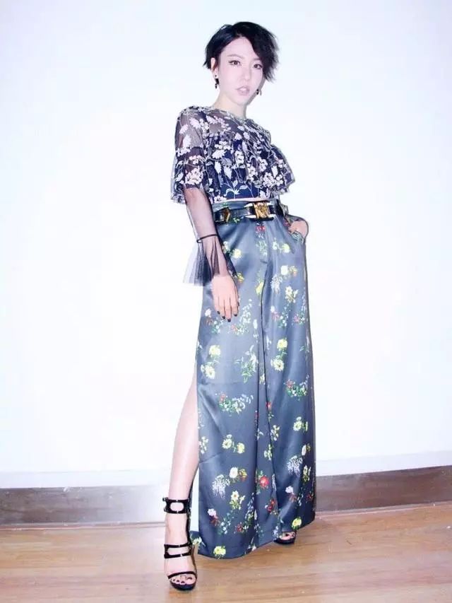 吴莫愁这一身造型够花哨,上面是一件花衣服,下面却配了一条花裙子,上面布满了图案,真够让人头晕目眩的,不过特别拉长身材比例。