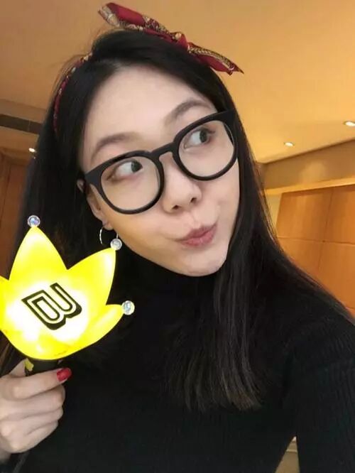 素颜的吴莫愁看着比较的清纯,再配上她戴的那一副大眼镜框,带有点书生气息,穿了一件黑色的毛衣,整个人都是比较柔美。