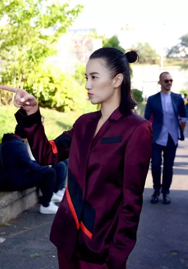 宋佳去年都在这样扎了,穿西装搭半扎丸子头,帅气又可爱!