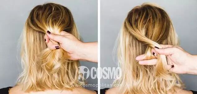 STEP1:先将头顶的头发分出来一部分,做成两股备用。