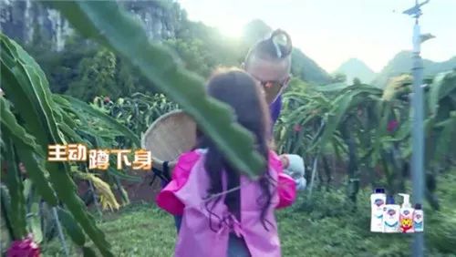 小泡芙摘不下来火龙果,哭嘤嘤的开始撒娇,陈小春马上跑过来忍痛拿着刺,让小泡芙扯下来。
