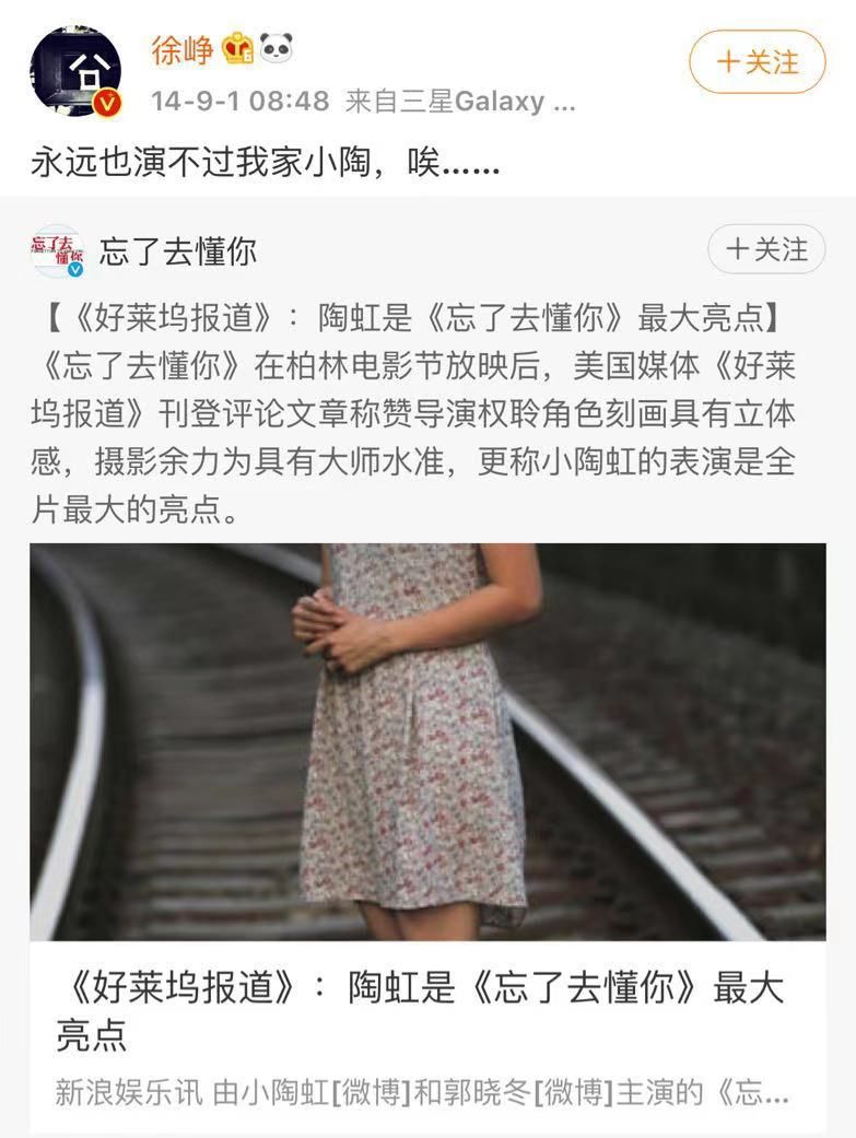 而即使隐退做着优秀导演身后的女人,陶虹的专业能力在徐峥心里一直被尊敬崇拜着