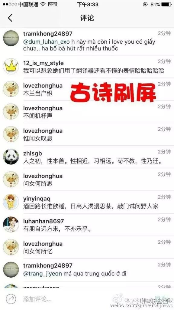 不知道宋茜看到这些这个时刻这么可爱的网友们在屏幕那端是什么反应呢,从来没觉得网友这么团结过。那个古诗和文言文也是让小编大开眼界了,还有这么长时间,只想说,有没有再有创意的玩法了?