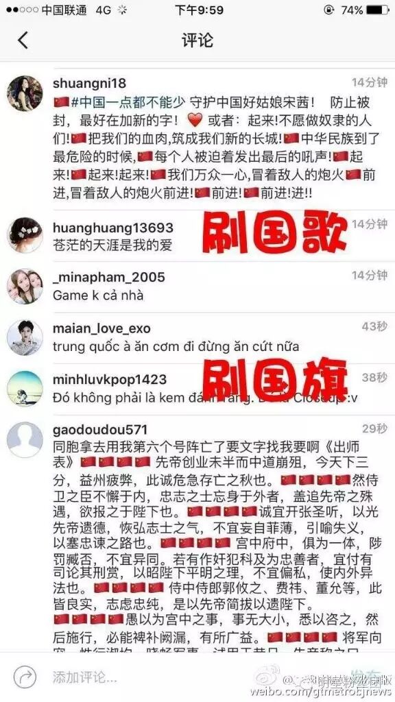 要说最近的全民女神是谁,那一定是宋茜了,作为一个从韩国回来的艺人,在国家领土主权问题有威胁的时候,第一时间在ins.(全世界通用的社交软件)上发声,表示中国一点都不能少的女明星,宋茜姑娘这回不仅三观正,更是让不少路人转粉,直说,姑娘你真有种!不过,这个软件上可不是中国一个国家的网友,汇集了世界各地的网友们,更何况,宋茜还有很多外国的粉丝,这一天掉了四十多万粉不说,评论的样子简直睁不开眼,不忍心去看,终于发现,外国的吃瓜群众也是张口就来啊。不过,中国的网友表示,不要担心掉粉,哪个国家敢跟中国比人,不差那些。所以,当菲律宾和其他美国群众拥到宋茜ins.下破口大骂的时候,中国群众不开心了,翻墙也要去战斗的节奏,这是要你死我活的场面。小编以为两方要头破血流之际,中国的网友真是让人哭笑不得。