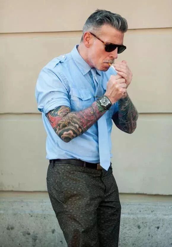 今天的彩蛋就比较鼓舞人心了,是51岁的怀神大叔Nick Wooster~看这花臂酷不酷?点个烟都那么撩~