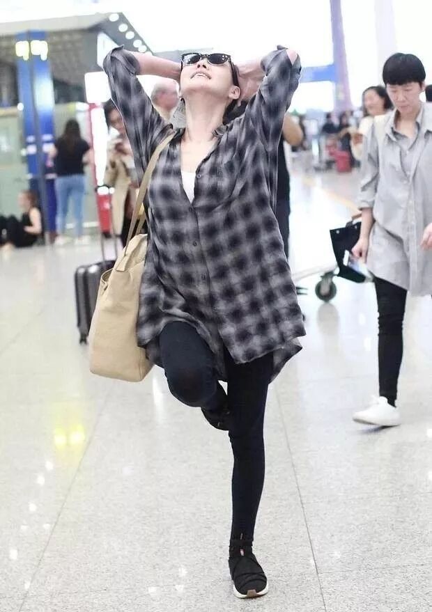 前几天在广州机场小S出了一组放飞自我的街拍,还蛮欢乐的说。看这高难度的POSE,偶像包袱不存在的。