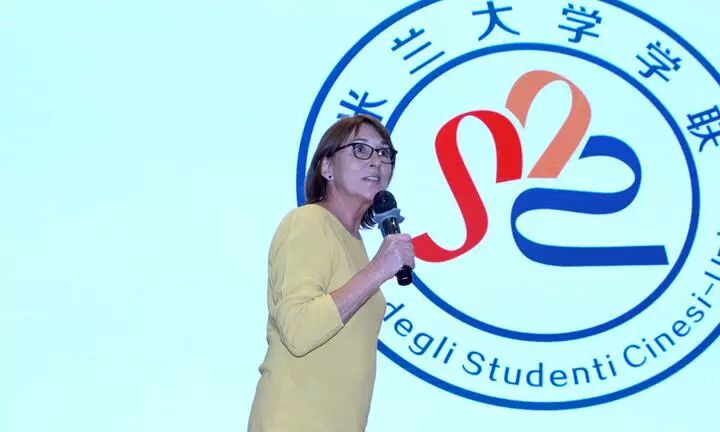 米兰大学中文系克拉拉(Clara Bulfoni)教授用中意双语与新生进行交流