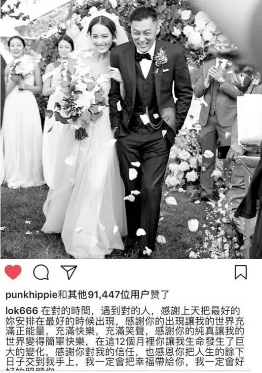 12月5日,余文乐在ins和微博上猝不及防撒了一把狗粮:我结婚了!