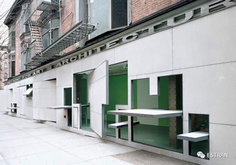纽约的艺术建筑临街屋中心(Storefront for Art and Architecture)于1982年在王子街51号运营,因为空间为狭长的三角形,临街的墙面成为一个特色。1992年建筑师史蒂芬·霍尔和艺术家维托·阿肯锡接受委任,通过改造墙面将整个机构变为一种可“内外翻转”的空间。