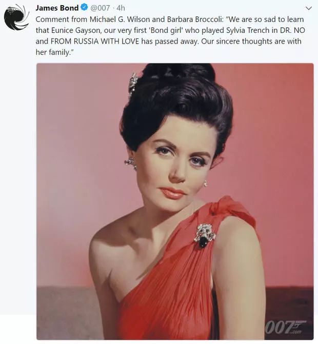 007系列制片人迈克尔·G·威尔逊和芭芭拉·布洛柯里也通过007官方推特表达了对她的悼念,“我们虔诚的心与她的家人同在”。