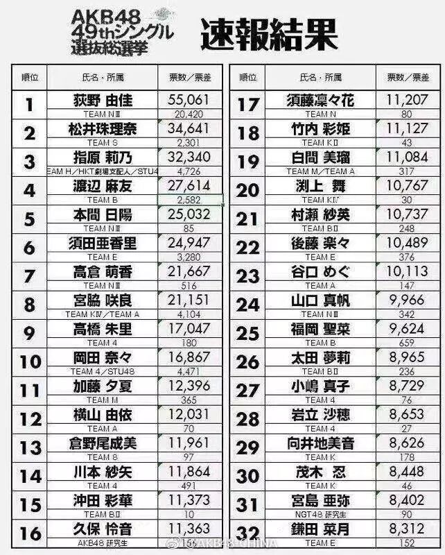 正如前文提到的那样,每年的总选举前每一位对48系稍有了解的观众心中都有一个自己的排名,而每年倍受瞩目的冠军候选人也总不外乎那几位成员,也正因为如此,今年速报中突然冒出的这个略显陌生的名字才让人如此震惊。