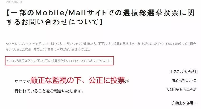 当然,由于速报结果太过匪夷所思,不少海那边的网友纷纷在质疑投票过程中是否有什么不正当的刷票行为,为此AKB运营官方甚至出了一份声明表示:投票过程中没有BUG↓