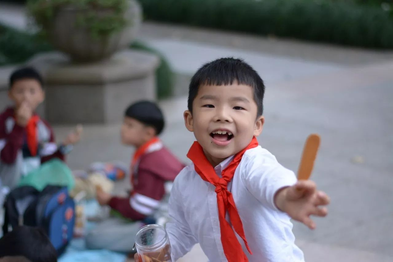 这不,刚到学校,正好国歌响起,不管在哪里,同学们立即停下,行队礼,唱国歌,让人肃然起敬,红领巾已经把他们从“孩子们”变成“同学们”了!