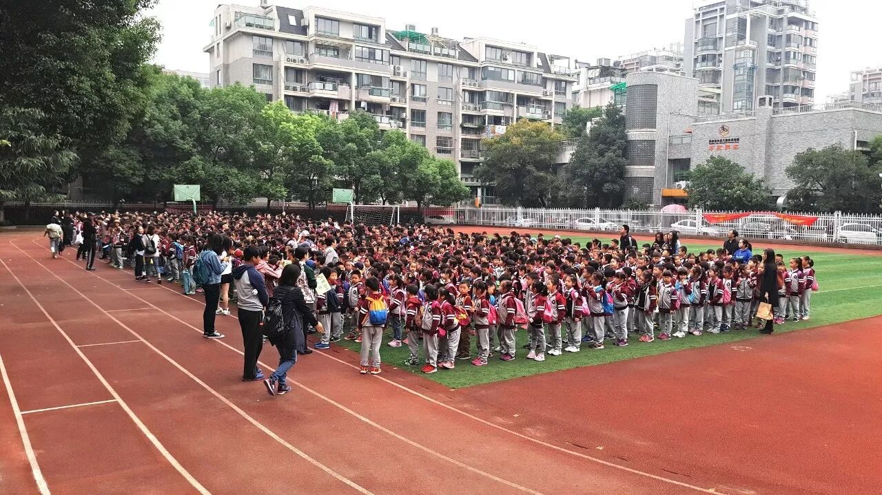 随后,全体在操场集合,校长交待了一些秋游注意事项。