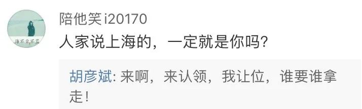 评论区有网友留言:人家说上海的,一定就是你吗?胡彦斌怼:来啊,来认领,我让位,谁要谁拿走!