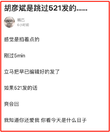 521刚过5分钟,也就是5月22日凌晨,胡彦斌熬夜发文,内容更是直接“copy”了郑爽的话——