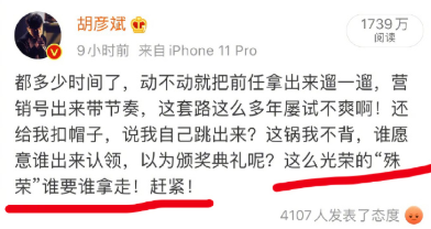 也有网友认为胡彦斌这是碰瓷式回应,是为了蹭热度。